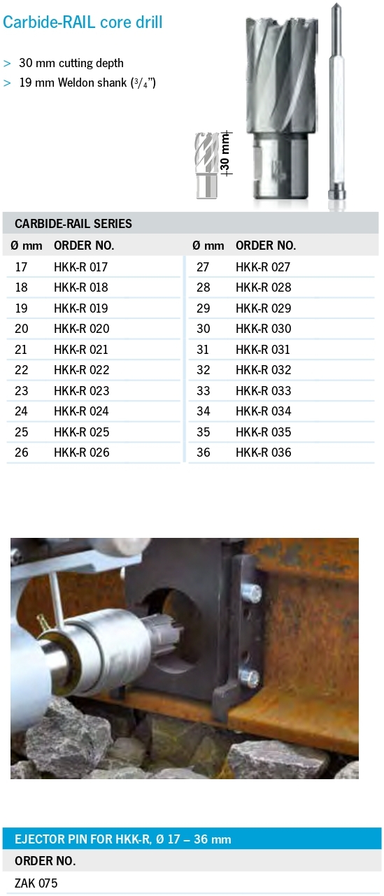 Krune sa karbidnim vrhom za bušenje šina.