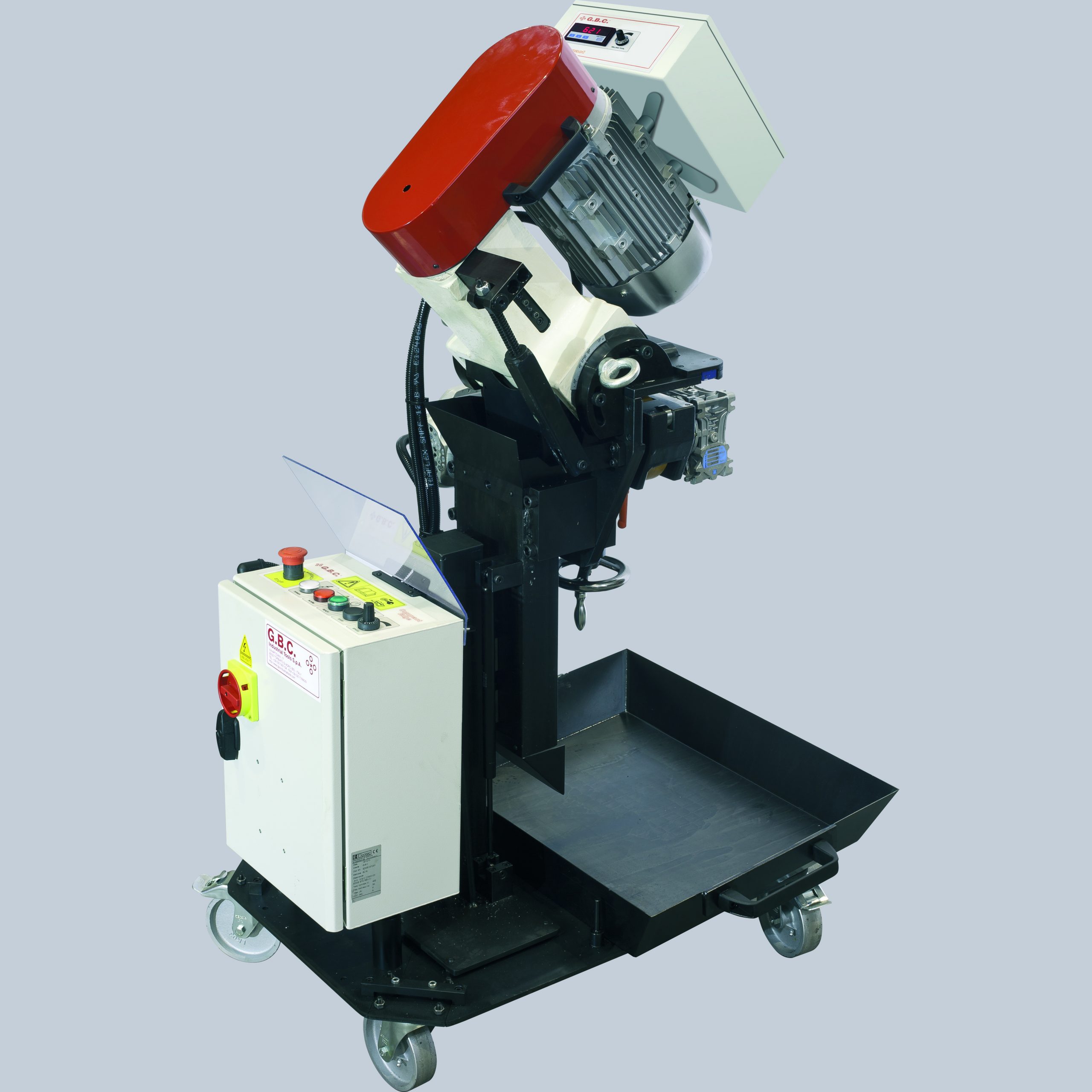 Mašina je opremljena sa senzorom za detekciju materijala i sa kolicima sa ekstraktorom strugotine. Takođe je opremljen i sa sistemom amortizacije za prevazilaženje eventualnih neravnina na ploči ili na zemlji.