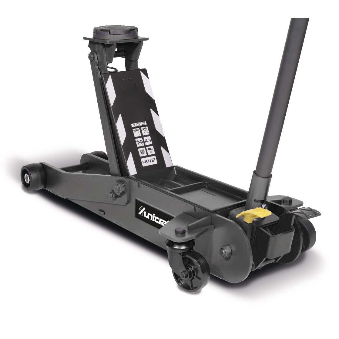 - Dvodelna poluga sa gumiranim rukohvatom za sigurno i jednostavno dizanje tereta.