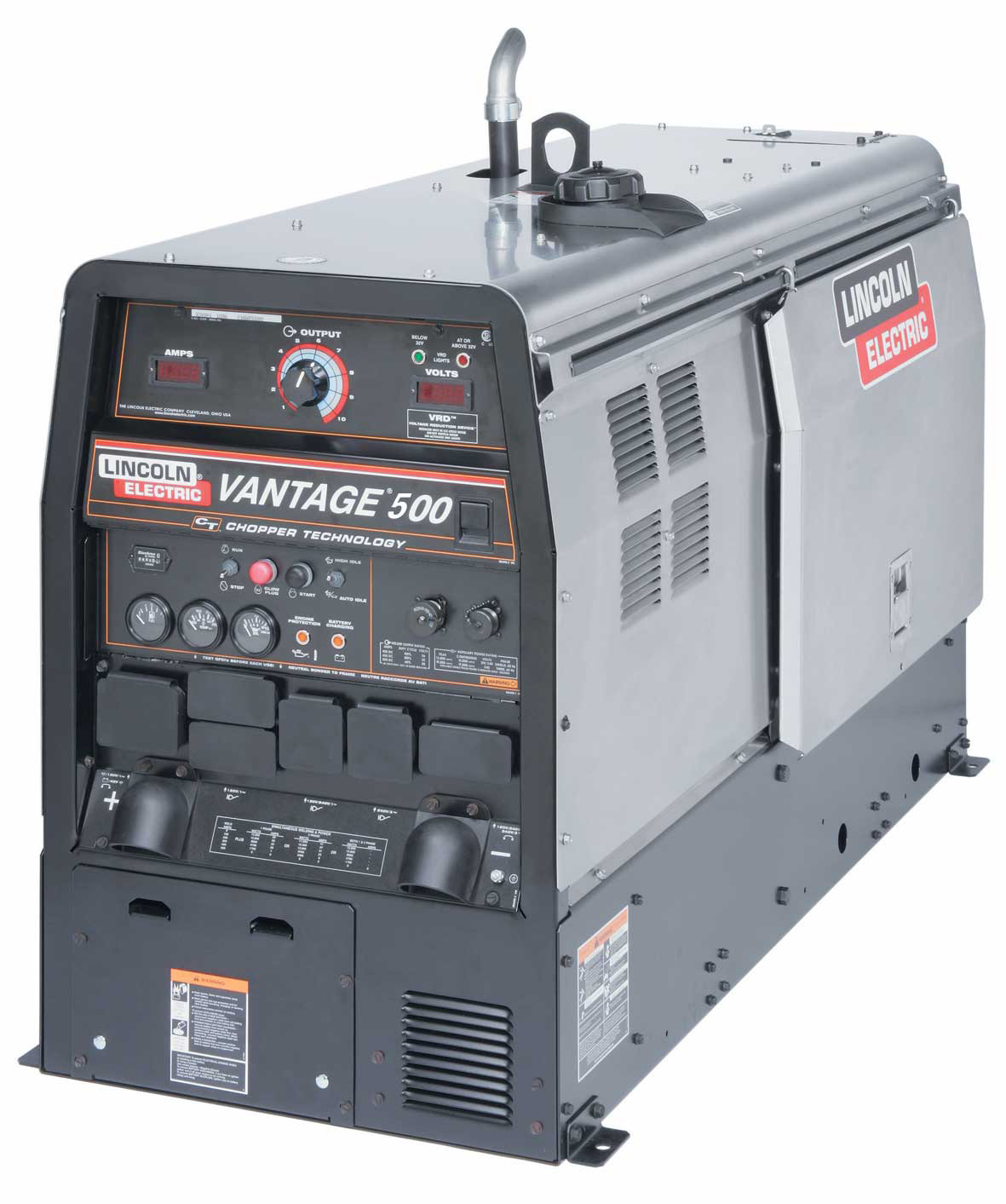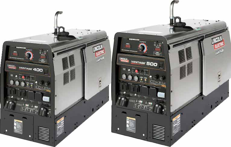Vantage 410CE i 500CE trenutno spadaju među najmoćnije i najkompaktnije generatore/agregate za zavarivanje čeličnih konstrukcija i cevovoda. Dosta su tihi, imaju ugrađene dizel motore sa 4 cilindra. Koristi se za različite procese zavarivanja, REL sa raznim vrstama elektroda , Lift TIG, CV (konstantan napon) poces sa žicama u zaštitnoj atmosferi gasa ili Innershield žice i žljebljenj grafitnom elektrodom do 8mm sa Vantage 410 odnosno do 10mm sa Vantage 500. Cenićete vrhunske karakteristike električnog luka koje osigurava Lincoln Chopper tehnologija. Takođe ćete ceniti VRD (Voltage Reduction Device – uređaj za smanjenje napona), koji smanjuje napon praznog hoda tokom zavarivanja konstantnom strujom, kako biste imali veći nivo sigurnosti.