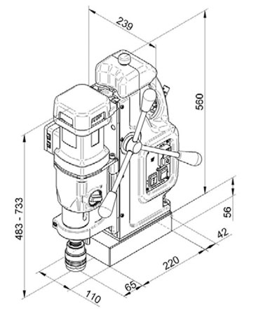 Morze konus vratila:  MK 3   Bušenje krunama 55 mm:  12 – 100 mm