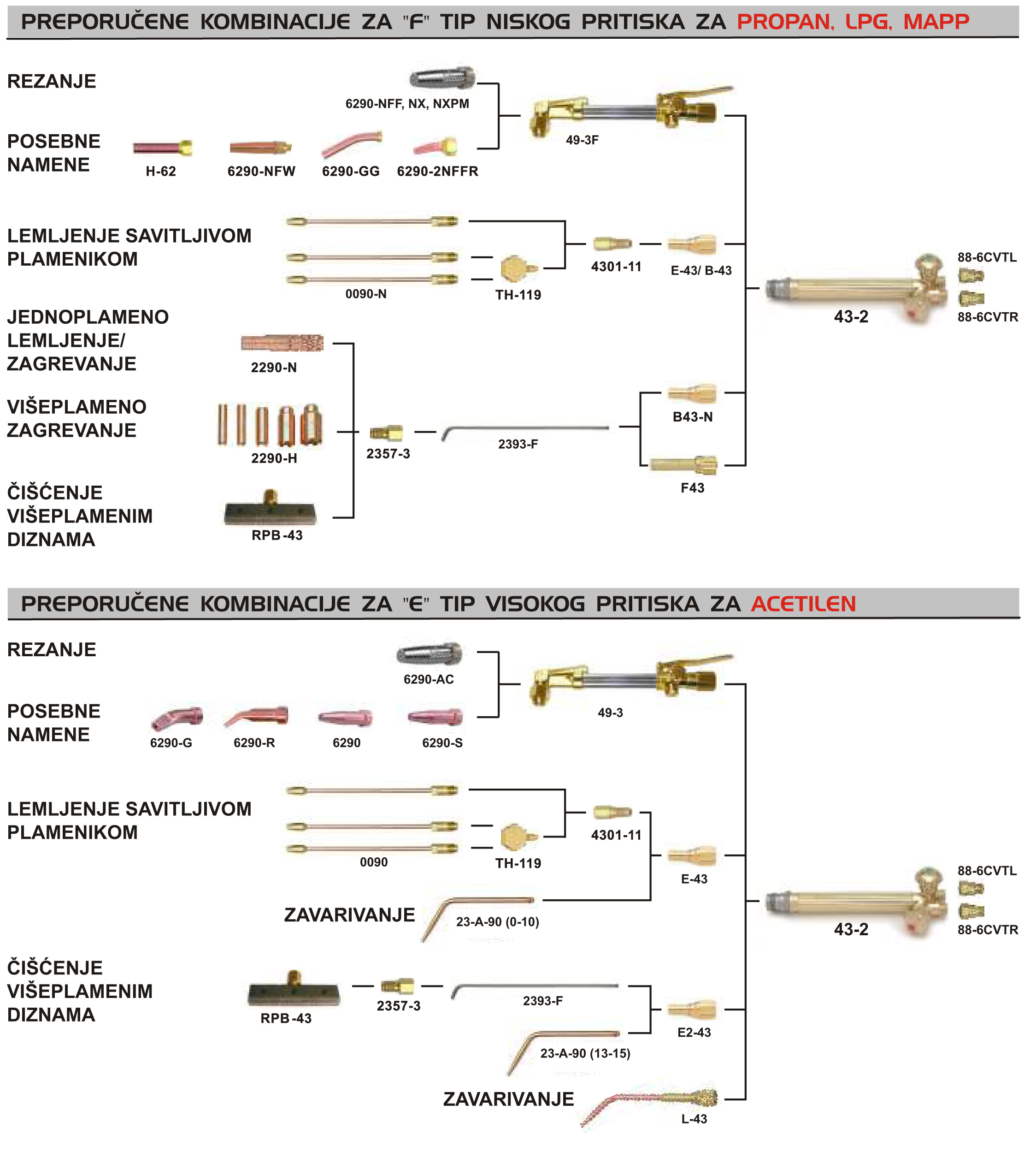 Višenamenski rukohvat za sve vrste gorivih gasova: propan, acetilen, TNG, MAPP. U zavisnosti od izabranog pribora može se koristiti za zavarivanje do 50 mm i rezanje do 150 mm.